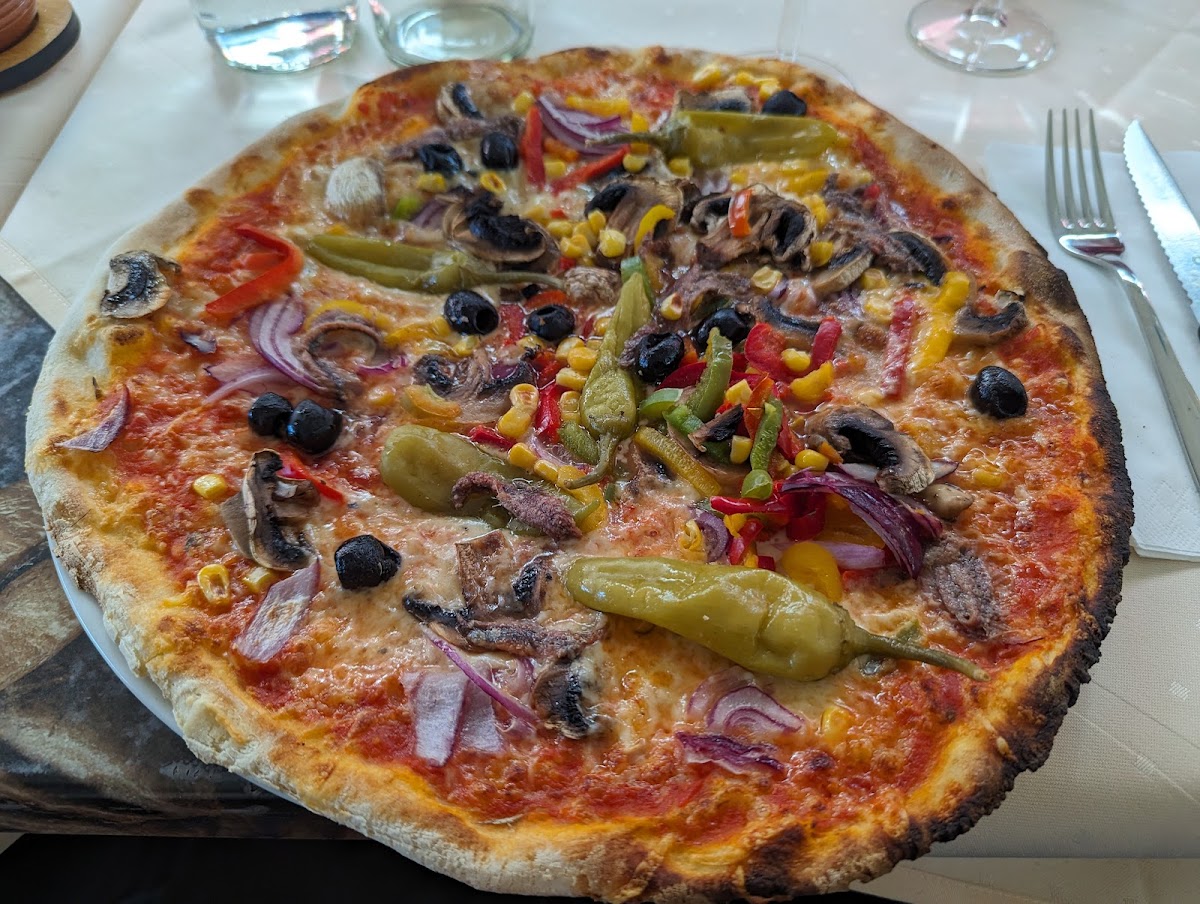 Fantastic pizza, friendly staff, great prices, outdoor and indoor seating. Pizzas so tasty and the large choice is large.